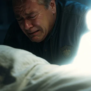 -عند الساعة السابعة صباحاً، حيث كنت وحيدة معه في ليلة ذلك اليوم كان أطفالي في بيت زوجي السابق فأضأت شمعة كبيرة ووضعتها في طرف الطاولة واستلقيت على الكنبة باكية ونمت وأحسست بقربه وعندما استيقظت في صباح اليوم التالي رأيت آثار الشمع المحترق على السجادة ممتداُ بطول ثلاثة أقدام عن الطاولة وكانت هناك فجوة محترقة في جسم السجادة قرب واسفل الطاولة مباشرة ، لحد الآن لا أعلم كيف جرى انتقال الشمعة بعيداُ إلى الممر الذي يفصل غرفة الجلوس عن المطبخ ، لكن أشتبه بأن أبي فعل هذا ليجنبني حريق كبير.