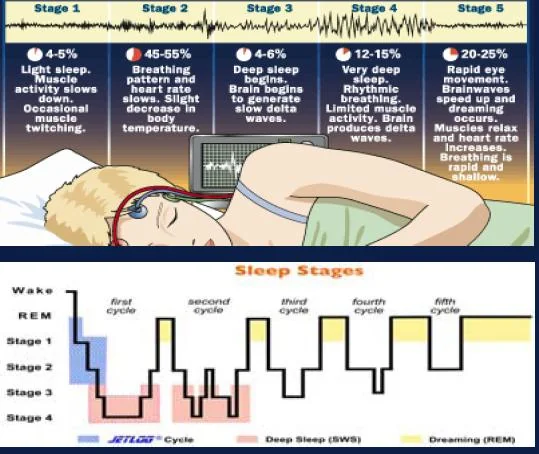 يكون خلالها الشخص واعياً لما يحدث ولكن لا يستطيع الحركة. ويستغرق ذلك الشل من ثوان إلى دقائق معدودة ويدب الرعب في الشخص. عندما لا يكون هناك مصاحبة للأعراض العصبية الناتجة عن الإفراط في النوم عند ساعات النهار (ناكرولبسي Narcolepsy) عندئذ تسمى الحالة بـ شلل النوم المعزول Isolated Sleep Paralysis أو إختصاراً بـ ISP ، وهي حالة تشيع لدى الأفارقة بالمقارنة مع نظرائهم البيض وفي المجتمعات الإفريقية يشار إليها بـاسم :"الشيطان على ظهرك". تظهر الصورة المبينة مراحل النوم الخمس ، إضغط للتكبير.