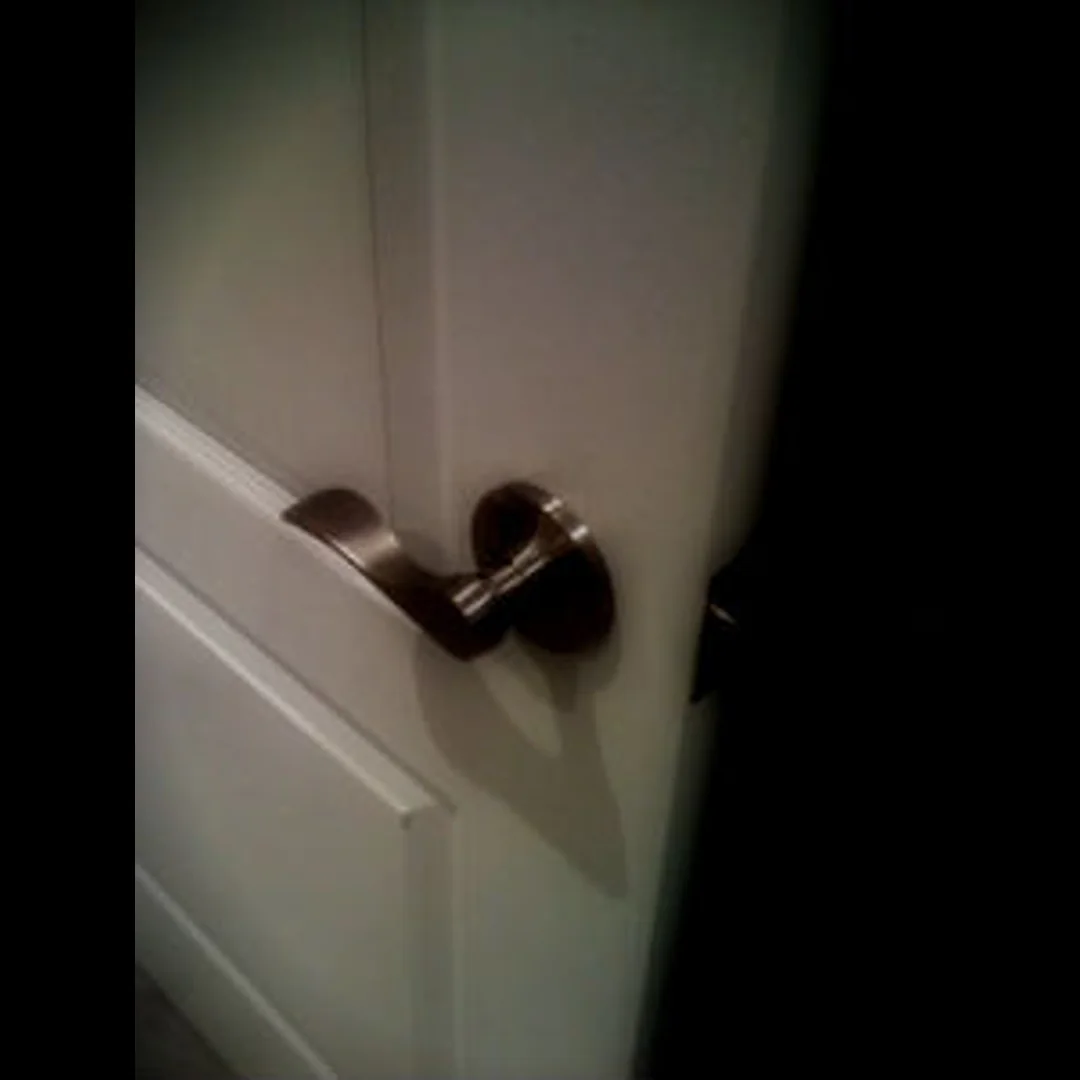 ثم تسللت بهدوء كي لا تستيقظ وذهبت لأنهي بعض أعمال المطبخ وبينما أنا منهمكة وأحاول الإسراع في إنجاز أعمالي رأيت طفلتي الصغيرة واقفة عند باب المطبخ فنظرت إليها لأسألها ماذا تريد ؟! لكنها خبأت وجهها فجأة خلف الباب وأمسكت به بيدها الصغيرة وعندها قلت بنفسي أنني سأنتهي من أعمال المطبخ لأرجع بها للنوم وحينما عدت بنظري إليها مجددآ وأنا أغسل يداي (لا أدري لماذا شعرت بقشعريرة شديدة) وجدها لا زالت مختبأة ويدها ممسكة بالباب !