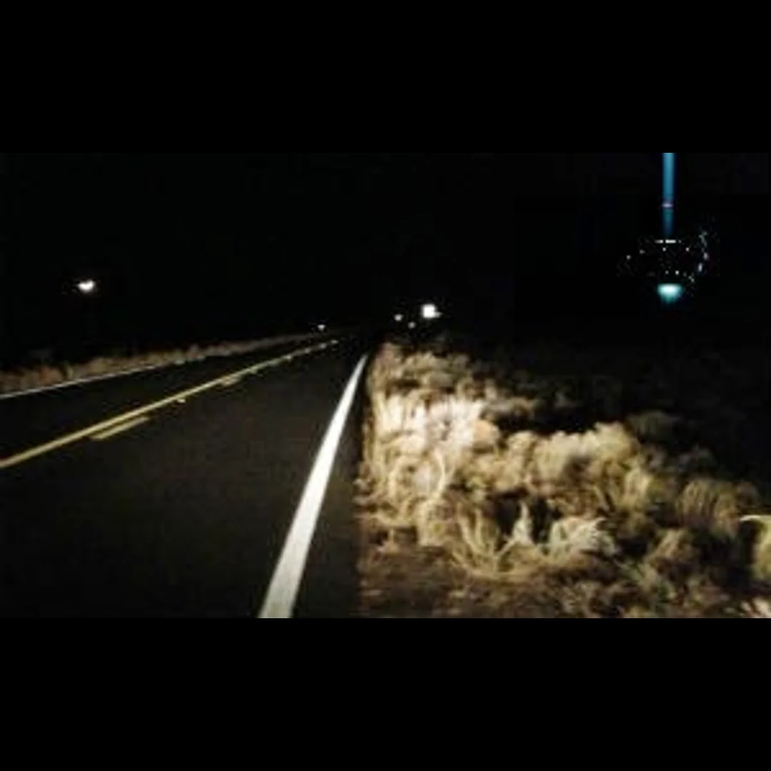 استخدم زوجي حينها خاصية تحديد المواقع الجغرافية بالأقمار الصناعية GPS الموجودة في هاتفه المحمول وانطلقنا وبعد مدة ضللنا الطريق ووجدنا أنفسنا نسير في شارع يخلو تقريباً من السيارات وكان طريقاً سريع Highway وعلى جوانبه لا يوجد سوى صحراء او بالأصح أراضي تفترشها الرمال وشديدة الظلام ، والضوء الوحيد الموجود هو ضوء أعمدة الأنوار الخاصة بالشارع نفسه ، خلال المسير سمع زوجي فجأة صوتاً قوياً جداً كصوت محرك طائرة يدوي على مقربة منا، فنظر الي وقال : " هل تسمعين ؟؟ " ، فقلت : "نعم" . وما إن نظرنا من زجاج النوافذ حتى رأينا جسماً ضخما جداً ، كان كروي الشكل ويهبط على الأرض بالقرب منا على جانب الطريق ويخرج من هذا الجسم شعاع ضوء يتجه نحو الأعلى ، لم يكن هذا الشي طائرة فقد كان كروياً تماماً ويشبه ما نراه في صور الأجسام الطائرة المجهولة أو الأطباق الطائرة ، كان يزيد عن حجم الطائرة الكبيرة بمرتين أو حتى 3 مرات ، و كان ذلك على بعد 500 متر تقريباً على الجانب الأيمن من الطريق .. وعندما هبط لحقه من فوقه جسم أصغر لم أستطع رؤية شكله تماماً لكنه حجمه أصغر بكثير وهبط فوق الجسن الكبير وكان عليه أضواء تنير وتطفيء بالتتابع .