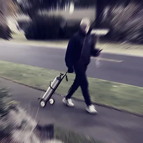 وفي إحدى الليالي استيقظت حوالي الساعة الثانية صباحاً فرأيت كياناً ظلياً يقف أمام باب غرفتي. أعلم أن هذا يبدو جنونياً ، لكني تمكنت من رؤيته ، كان يرتدي قميصاً بلونين أزرق وأرجواني ، كان شعره طويلاً وداكناً ، وعريض المنكبين ، كما كان يحمل (بناء على ما فسرته) مكنسة كهربائية، ذلك الموديل القديم " ذو الخرطوم الطويل الذي يمتد من جسم مستطيل يستند على عجلات" ، في اللحظة التي رأيته فيها وضعت رأسي على الفور تحت البطانيات مذعوراً، وبعد بضع دقائق اختلست النظر إليه لكنه اختفى ، لم أشعر أنها مواجهة مع كيان شرير أو خبيث ، بل كانت مواجهة مخيفة وغامضة.